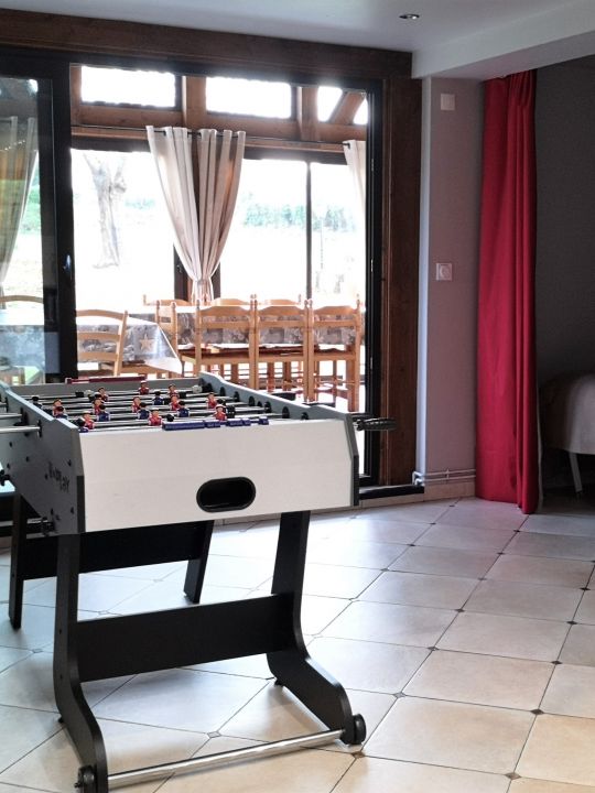 - un grand salon avec deux canapés, une télévision, un poêle à bois, un buffet où sont rangés tous les jeux de société,