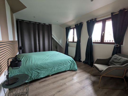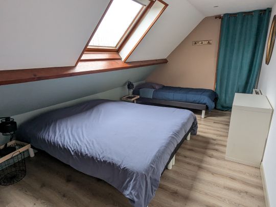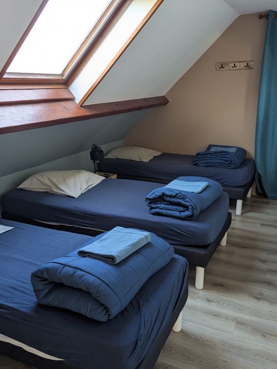 - Une chambre avec 3 lits simples 90 cm (possibilité de former un lit double)