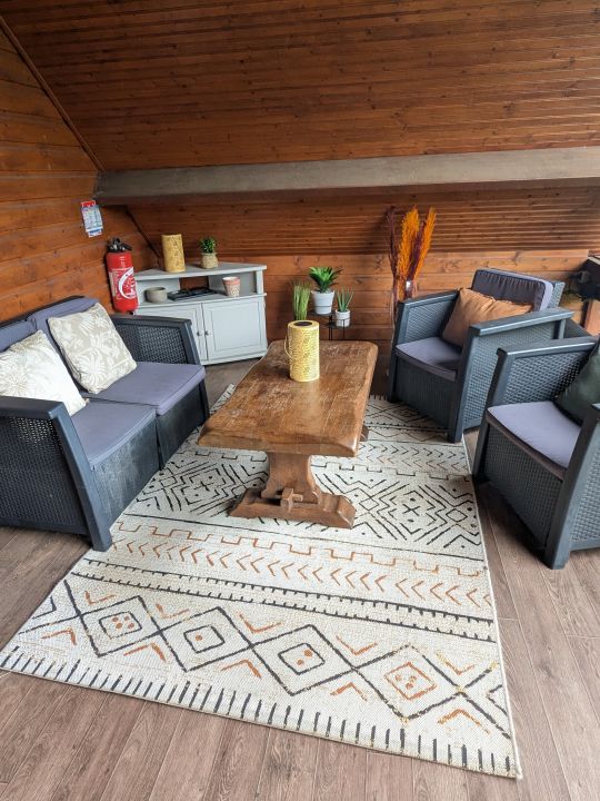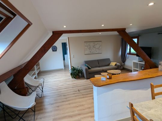 Ce logement se situe au premier étage de la dépendance. Il s’agit d’un appartement de 70m².
