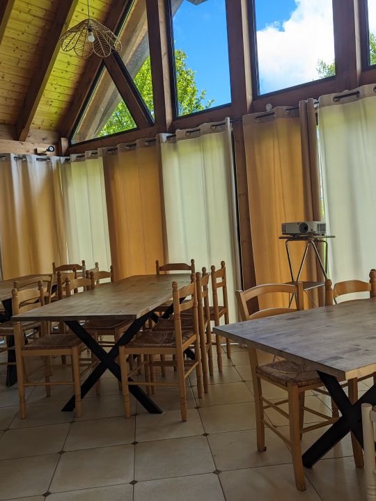 o Une véranda de 25m² avec 3 tables à manger