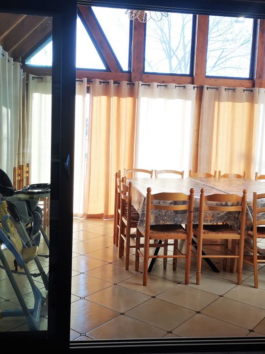 - une véranda de 23 m² faisant office de salle à manger ou salle de jeux, pourquoi pas ! Celle-ci peut entièrement s'ouvrir sur le jardin afin d'en profiter pendant les beaux jours !