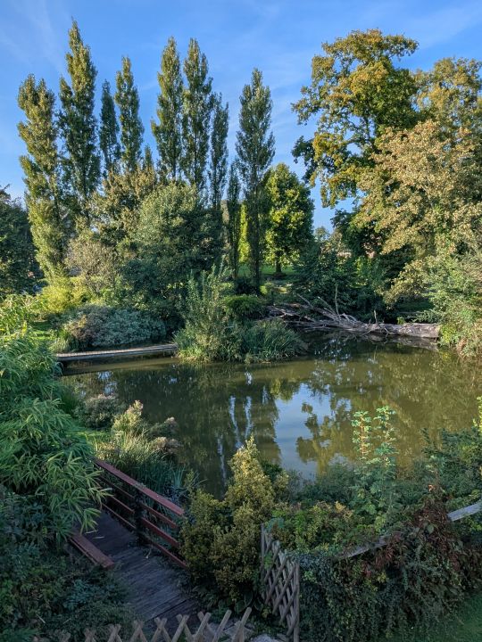 Beaucoup de fenêtres donnant de la luminosité à cet espace. Vue traversante, d’un côté le jardin, de l’autre, la vue sur l’étang.