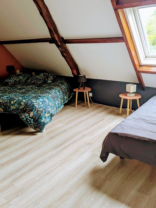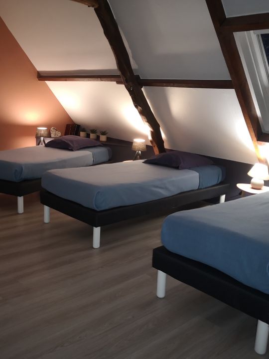 - une chambre avec 3 lits de 90cm (possibilité de faire une lit double)