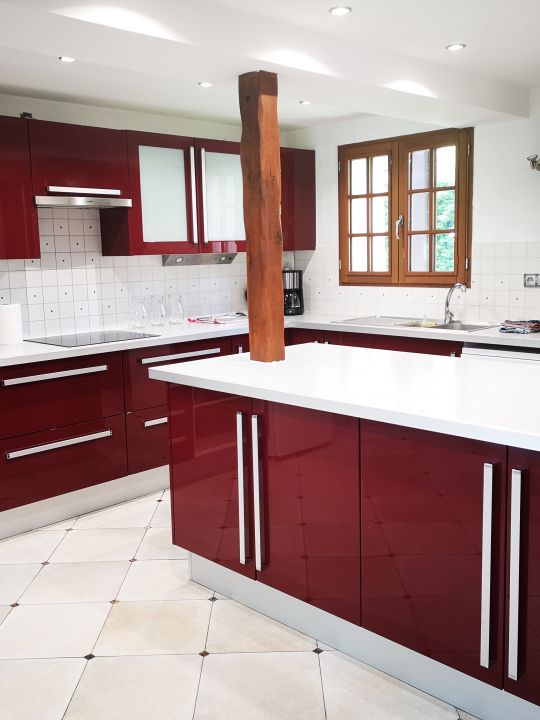 - une grande cuisine, équipée d'un four, micro-onde, bouilloire, cafetière à filtre, une cafetière dolce gusto, un grille-pain, deux réfrigérateurs et tout le nécessaire pour cuisiner de bons petits plats, un grand plan de travail afin de travailler comme un chef !